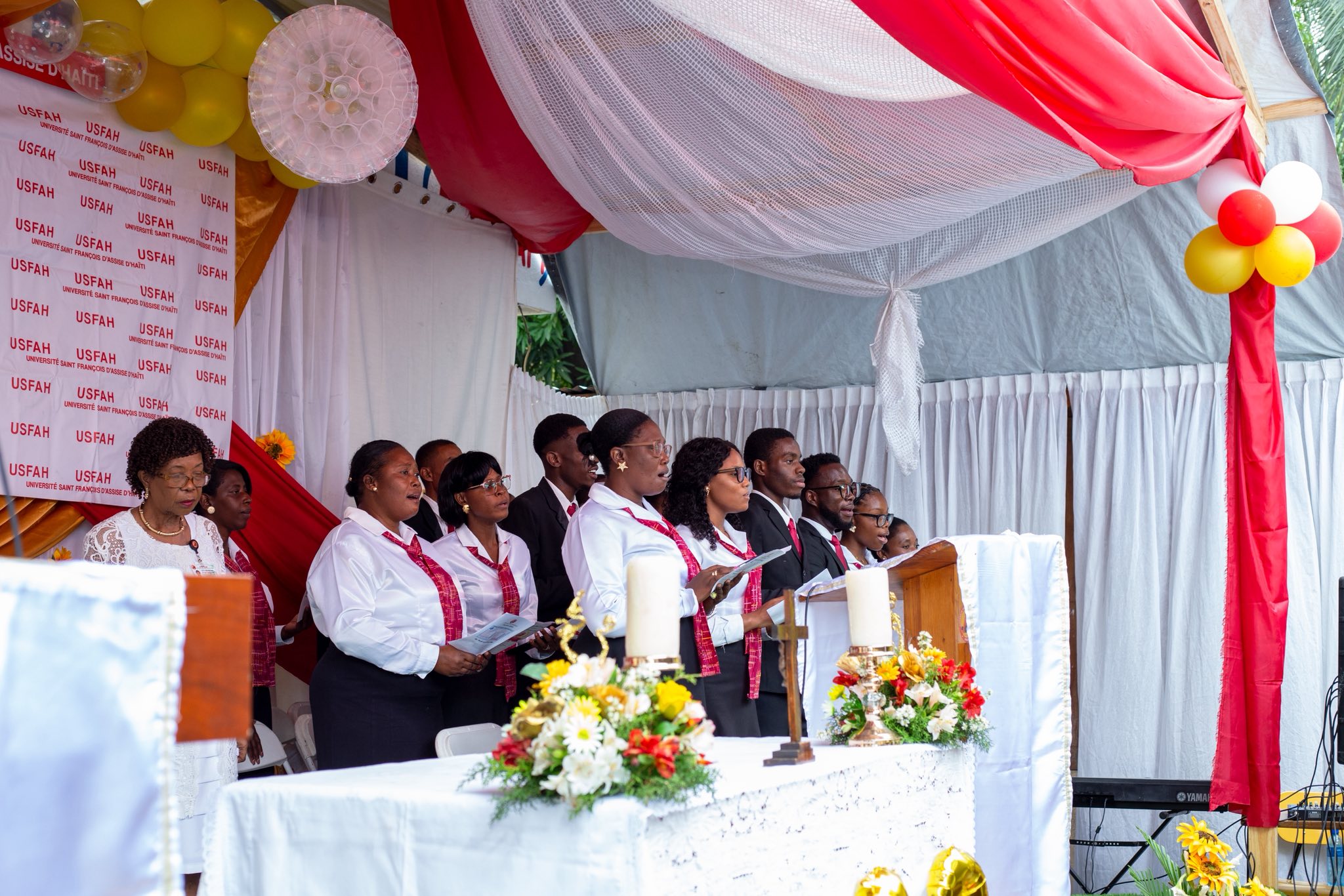 Lundi 11 novembre 2024 a marqué un jour historique pour l'enseignement supérieur en Haïti avec l'ouverture officielle de l'Université Saint François d’Assise d’Haïti (USFAH) au Cap-Haïtien. La cérémonie s'est déroulée en présence d'invités de marque et de partenaires académiques et a été célébrée par le Révérend Père Baoro Elysé Behorde. L'événement a été magnifiquement animé par la Chorale Carillon de l'Amour de la basilique Notre-Dame de l'Assomption, ajoutant une touche spirituelle et solennelle à l’inauguration.